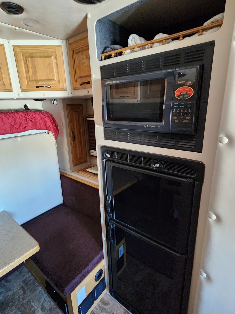 Standard Sleeper Features Include: Paint, Stainless Steel Skirt, Light Weight Aluminum Structure. Raised Panel Door Fronts, 1 Wardrobe Cabinets, Under Sink Storage Cabinet with Shelf, Door Struts In Overhead Cabinets, Cabinets and Drawers Lined with Cargo Liner For Noise Reduction, Angled U-Shaped Overhead Cabinets, One Piece Seamless Shower with Cassette Porti Potti, Innerspring Mattress, Premium Grade Residential Style Linoleum, LED Light Fixtures, Hardwood Shower Door, High Profile Faucet, 24 x 16 Window with Trim & Day/Night Shade, Egress Window with Hardwood Trim and Day/Night Shade, Heater/Air Conditioner with Wall Thermostat (Tied To Tractor), Roof Vent with Smoked Cover, Surround Sound System, TV Antenna with Booster, Large 2 Door Norcold 0061 Refrigerator, 30 Amp Marine Grade Stainless Steel Shoreline Plug, 60 Amp Charger, Automatic Transfer Switch, 1200 Watt Inverter/Charger