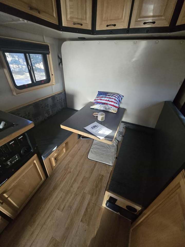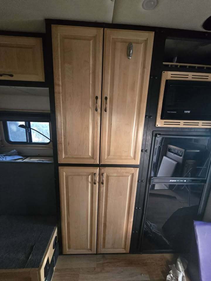 Standard Sleeper Features Include: Paint, Stainless Steel Skirt, Light Weight Aluminum Structure, Raised Panel Door Fronts, 1 Wardrobe Cabinet, Under Sink Storage Cabinet with Shelf, Door Struts In Overhead Cabinets, Cabinets Lined with Cargo Liner For Noise Reduction, One Piece Seamless Shower with Cassette Porti Potti, Desk With Overhead Cabinet, Premium Grade Residential Style Linoleum, LED Light Fixtures, Hardwood Shower Door, Large White Bar Sink with High Profile Faucet, 24 x 16 Window with Oak Trim & Day/Night Shade, Prep For Aerofront Window, Heater/Air Conditioner with Wall Thermostat (Tied To Tractor), Fantastic Fan with Smoked Cover, Surround Sound System, TV Antenna with Booster, Large 2 Door Norcold 0061 Refrigerator, 30 Amp Marine Grade Stainless Steel Shoreline Plug, Automatic Transfer Switch, 1200 Watt Inverter/Charger.