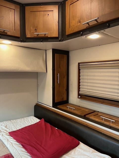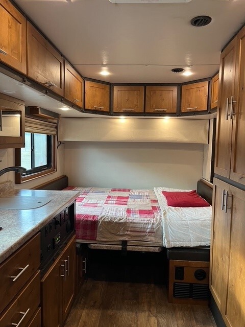 Upgraded Sleeper Options Include: Havana Rum Décor Package; Bed/Dinette with Self-Storing Table, Self-Storing Cushions & Bed Struts; Microwave/Convection Oven; Fresh Water Tank Monitor; Medicine Cabinet with Mirror & Adjustable Shelf; Single Burner Induction Cooktop; Roof Vent with Wireless Remote; Hardwood Trim to Roof Vent and to Refrigerator Opening; 32” TV with In-Motion Satellite; Vinyl Mattress Curtain; Hardwood Dinette Bases; LED Soft White Strip Lighting to All Overhead Cabinets on 1 Switch; Décor Reading Light; Dimmer Switches to Ceiling and Bed/Dinette Area Lights; LED Strip Light Below Countertop Lip; 3-Way Switch in Cab to Counter Lights; Onan Quiet Diesel 7500 watts 3 cyl. with 11,720 hours on gen; Roof A/C 13.5 BTU with Ducted Air and Heat Strip; Fiberglass Wind Deflector, U-Shaped Side Fairings with Stainless Steel Enclosures; 5-Bag Air Ride System; Stainless Behind Top Clearance Lights; Deckplate with Super Step and Grab Handle, Truck Exhaust Extended to Rear of Sleeper; LED Clearance Lights Top of Sleeper; LED Clearance Lights Below Cab Doors; 2 Pairs of Red Load Lights; 1 Pair of Clear/White Load Lights; 1 Pair of Docking Lights; Tool Compartment Door on DS Rear; 14X x 14” Window in Shower; 24” x 16” Window DS with Wood Trim & Shade, Spray Foam Insulation in the Sleeper and in the High Cab; Slide out shelves in sleeper; extra drawers; custom coffee or printer cabinet; and so much more!
