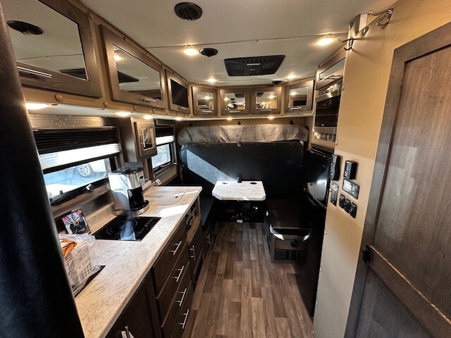 Standard Sleeper Features Include: Paint; 304 Mirror Finish Stainless Steel; Stainless Steel Skirt (No Rivets); LED Clearance Lights in Stainless Skirt; Light Weight Aluminum Structure; Flat Panel Solid Hardwood Door Fronts; Hidden Cabinet Door Hinges; TV Cabinet with Storage Behind TV; Four Drawers Below Counter; Wardrobe Cabinet; Under Sink Storage Cabinet with Shelf; Door Struts in Overhead Cabinets; Cabinets Lined for Noise Reduction; Dividers In All Overhead Cabinets; Angled U-Shaped Overhead Cabinets; Two Bunk End Storage Cabinets; One-Piece Fiberglass Shower with 13 Gallon Holding Tank & Bench Style Cassette Toilet; High Pressure, Water Saving, Shower Head; Single Control Shower Faucet; Shower Water Diverter Valve – Recycle Cold Water; 2 Towel Hooks In Shower; Storage Basket In Shower; Mirror Inside of Shower Door; Hardwood Shower Door; Mattress; Bed Restraint; Premium Grade Residential Style Linoleum; Coat Hooks; LED Light Fixtures; LED Auto Light In Sink Cabinet; 2 USB Receptacles; Undermount Stainless Steel Sink; Decor High Rise Sink Faucet; Towel Bar to Sink Cabinet Door; Magnetic Strip to Boot Curtain; 24" x 16" Frameless Window with Hardwood Trim & Day/Night Shade PS; Frameless Egress Window with Hardwood Trim & Day/Night Shade PS; Smoke Detector; Heater/Air Conditioner with Wall Thermostat; Roof Vent with Smoked Exterior Cover; 32” HD LED Flat Panel TV; Extra HDMI Recepts in A/V Cabinet Tied to TV; Sound Bar System with Subwoofer, Blu-ray, HD; TV Antenna with Booster; Household Style 7.3 Cf. 2 Door Refrigerator/Freezer; Interior Water Fill Access – Fill Tank with Jug; 30 Gallon Insulated Water Tank with Brass Fittings; City Water Hookup; Hot Water Heater with 6 Gallon Capacity; 30 Amp Shoreline - Marine Grade & Heavy Cord; Automatic Transfer Switch; and 2800 Watt Inverter/Charger with Remote Display.