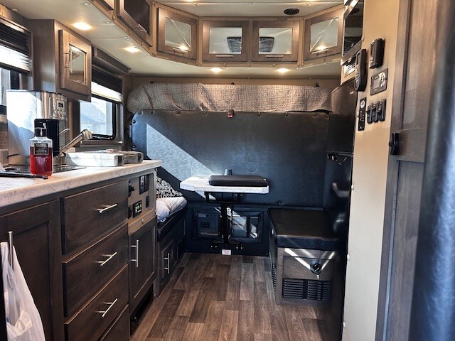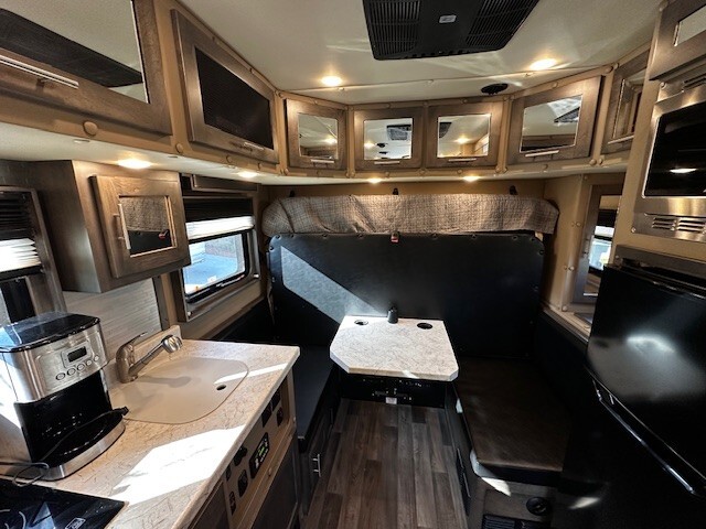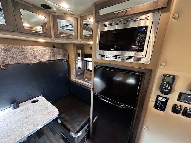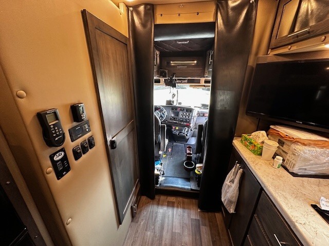 Upgraded Sleeper Options Include: All Inclusive Interior Décor Package – Antique Slate; Kenworth T680 High Cab Conversion with Paccar Visor; 44” Bed Dinette with Self-Storing Table, Self-Storing Cushions & Bed Struts in Place of Fixed Rear Bed, with (2) Cupholders in Table; Medicine Cabinet with Mirror & Adjustable Shelf; Hardwood Dinette Bases; Hardwood Trim to Roof Vent; Roof A/C 15k BTU with Ducted Air & Heat Strip; Interior Roof A/C Shroud Painted Black to Match Interior Décor; Baseboard Heater 110 Volt; Microwave/Convection Oven; Single Burner Induction Cooktop; Hardwood Trim to Refrigerator Opening; In-Motion Satellite System with Dish Network HD Receiver; Fresh Water Tank Monitor Panel; Plastic Sink Cover/Cutting Board; Backsplash – Mini Silver Subway Above Countertop Area; LED Soft White Strip Lighting to All Overhead Cabinets on One Switch; Décor Light Mounted on Ceiling; Décor Reading Light in Main Bed Area; Dimmer Switch for Ceiling Lights; Dimmer Switch for Bed or Dinette Area Lights; Blue LED Strip Below Countertop Lip; 3-Way Switch in Cab Tied to Counter Lights; Onan Quiet Diesel 7500 Watts 3 cyl. in 52” Stainless Steel Box; Onan Auto Generator Start with HVAC (6,125 hrs. on gen); Start/Stop Switch to Cab Dash Panel; 3-Bag Air Ride System with Ride Control Valves; Fiberglass Wind Deflector; Deckplate with Super Step & Grab Handle; Truck Exhaust Extended to Rear of Sleeper with Deflector; 30" Stainless Steel DEF Cover with 1 Door; 20" Stainless Steel Tool Box on DS; Side Fairing 14” Overall DS & PS with Stainless Steel Fairing Enclosures; Stainless Steel Below Cab Doors; 18 LED Clearance Lights Top of Sleeper; 6 LED Clearance Lights Below Cab Doors; Upgrade Clearance & Bullet Lights to Clear Lenses; 2 Pairs of LED Load Lights (Red); 1 Pair of LED Load Lights (Clear/White); 5 LED (1-3-1) Bus Lights; 14” x 14” Frameless Window in Shower; 24” X 16” Window on DS with Wood Trim and Shade; and Much More!