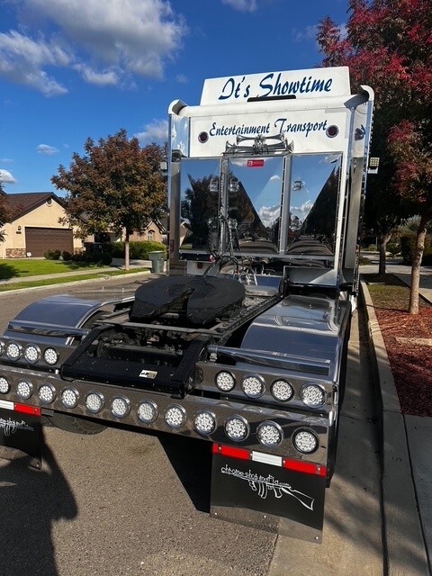 5-year / 500,000 mile extended warranty, full maintenance every 10,000 miles, entertainment transport only – no heavy loads, headache box 3 door with 2 side boxes, 14 lights rear bumper, lighted mudflap hangers, Canada legal. Tire size: Michelin Front. 315-80-R22.5 90%; Rear. 275-80-R22.5 70%