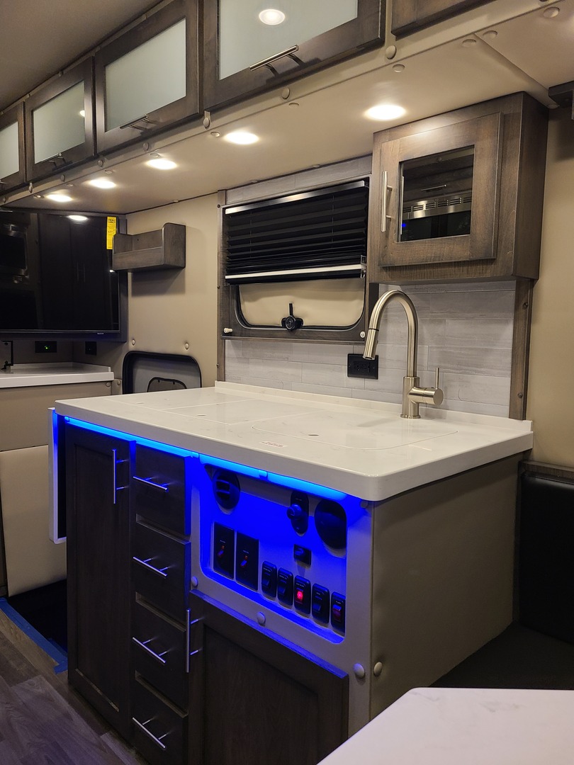 3000-Watt Inverter/Charger with Remote Display; Auto Generator Start with Purchase of Generator; Automatic Transfer Switch; 30 Amp Shoreline – Marine Grade & Heavy Cord; LED Light Fixtures; LED Auto Light in Sink Cabinet; (2) USB Receptacles