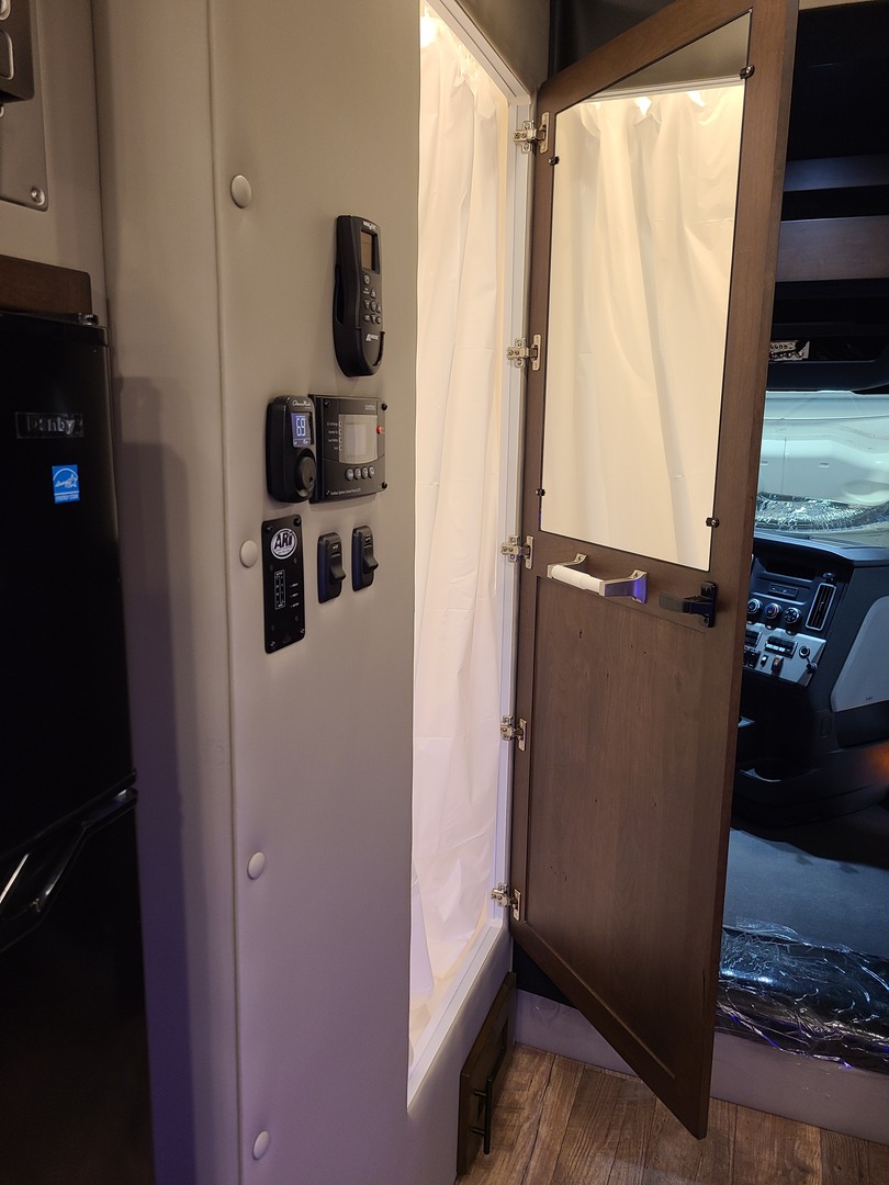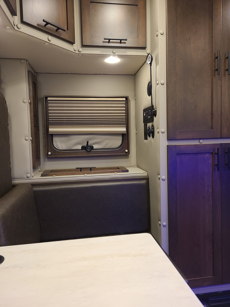 PACCAR Style Boot Ring*; PACCAR Exterior Doors; Structure is Water/Pressure Tested (Twice!); Tapered Aluminum Truss Rafters; 1” x 2” Aluminum Wall Studs; 3-1/2” Fully Insulated Floor; Waterproof Smooth Underbelly; Rain Cover for Roof Vent; Premium Water Lines with SS Constant Tension Clamps; Brass Water Line Fittings; Water Pressure Relief Valve; Water Fill Hose; Heated Shower; Smoke & Carbon Monoxide Detectors; Battery Voltage Monitor; Electrical Wiring Encased in Loom; GFI Kitchen Receptacle; Oversized Rocker Light Switches; High Density 10 year Cushion Foam*; Name Brand Appliances; Soap Dispenser in Shower; Insulated Window Inserts; Day/Night Shades; LED Auto Lights in Wardrobe*; Cedar Floor in Wardrobe* (*- Where Applicable)