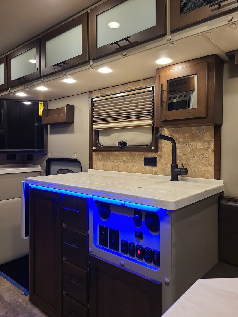 3000-Watt Inverter/Charger with Remote Display; Auto Generator Start with Purchase of Generator; Automatic Transfer Switch; 30 Amp Shoreline – Marine Grade & Heavy Cord; LED Light Fixtures; LED Auto Light in Sink Cabinet; (2) USB Receptacles