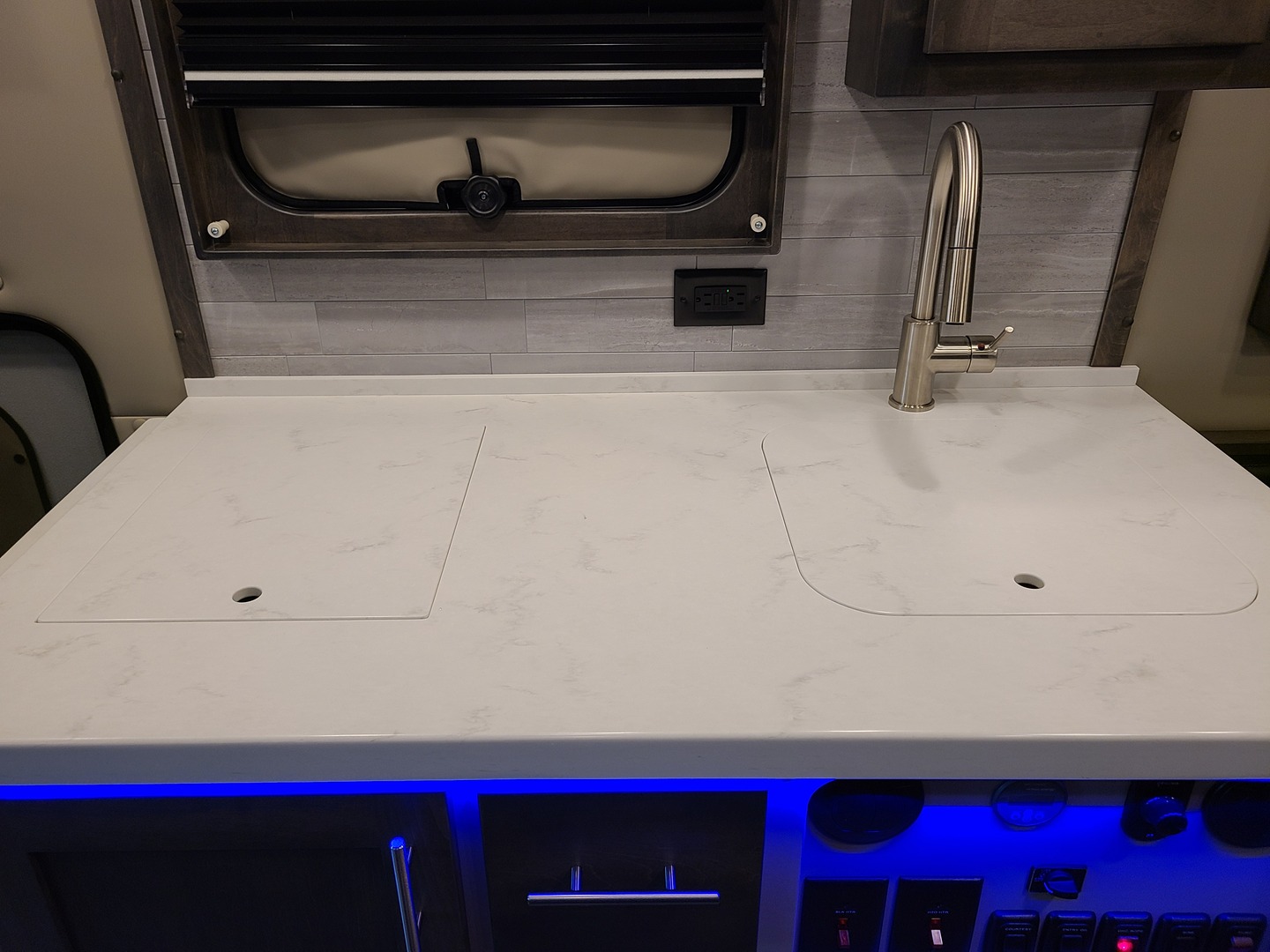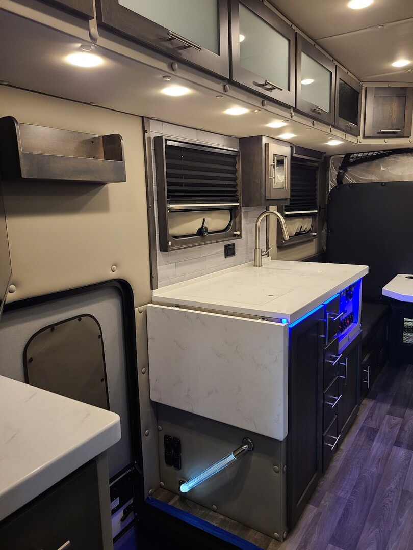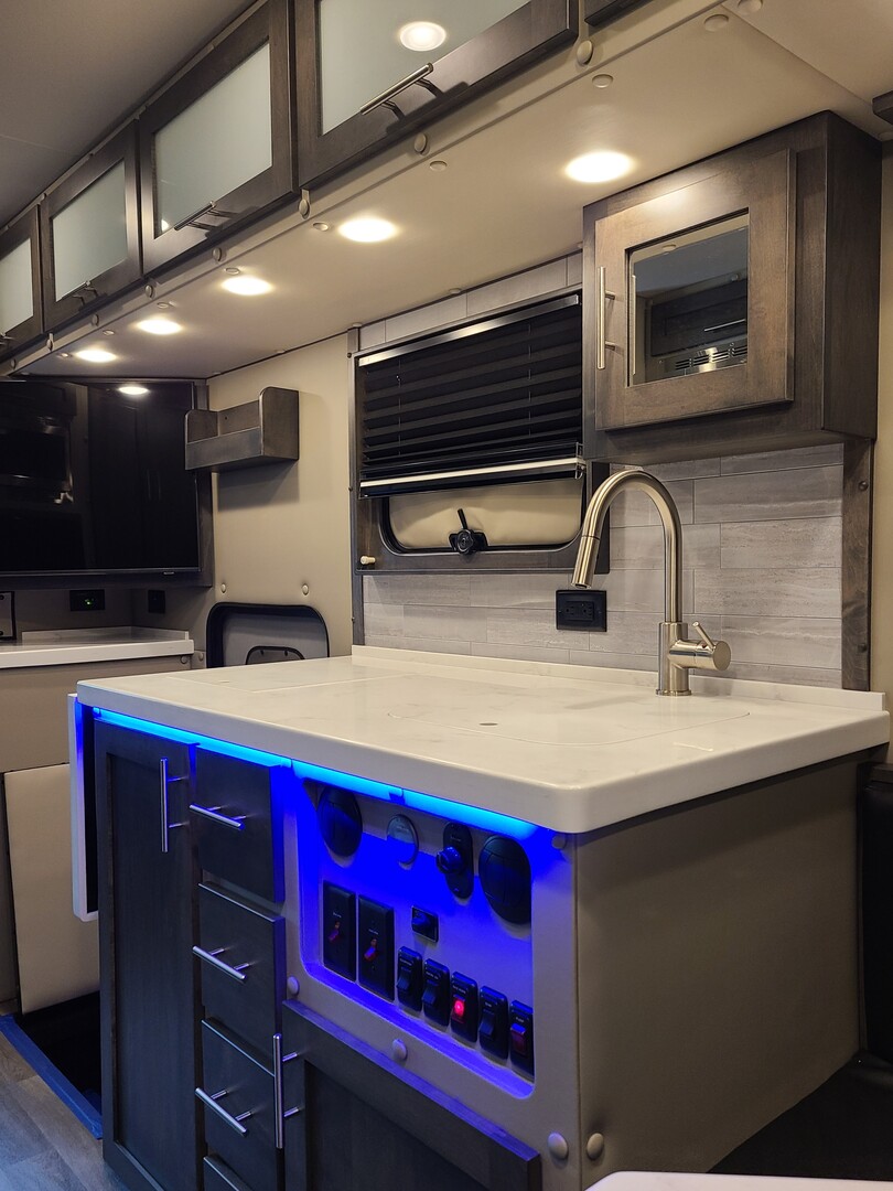 3000-Watt Inverter/Charger with Remote Display; Auto Generator Start with Purchase of a Generator; Automatic Transfer Switch; 30 Amp Shoreline – Marine Grade & Heavy Cord; LED Light Fixtures, LED Auto Light in Sink Cabinet; (2) USB Receptacles