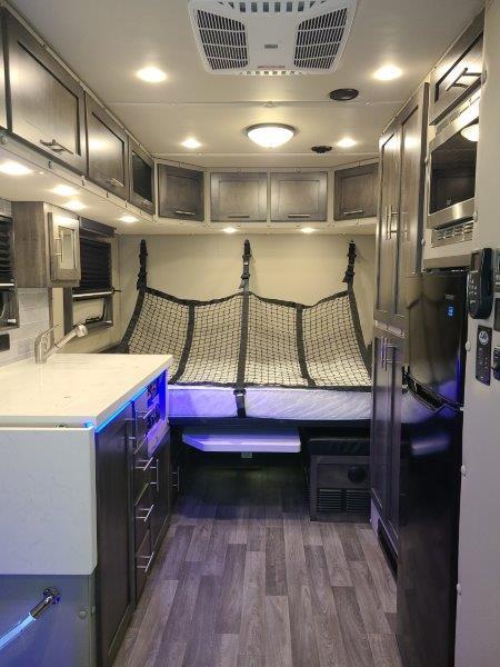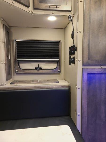 PACCAR Style Boot Ring*; PACCAR Exterior Doors; Structure is Water/Pressure Tested (Twice!); Tapered Aluminum Truss Rafters; 1” x 2” Aluminum Wall Studs; Fiberglass Wall Insulation (Cut & Fitted); 3-1/2” Fully Insulated Floor; Waterproof Smooth Underbelly; Rain Cover for Roof Vent; Premium Water Lines with SS Constant Tension Clamps; Brass Water Line Fittings; Water Pressure Relief Valve; Water Fill Hose; Heated Shower; Smoke & Carbon Monoxide Detectors; Battery Voltage Monitor; Electrical Wiring Encased in Loom; GFI Kitchen Receptacle; Oversized Rocker Light Switches; High Density 10 year Cushion Foam*; Name Brand Appliances; Soap Dispenser in Shower; Insulated Window Inserts; Day/Night Shades; LED Auto Lights in Wardrobe*; Cedar Floor in Wardrobe*