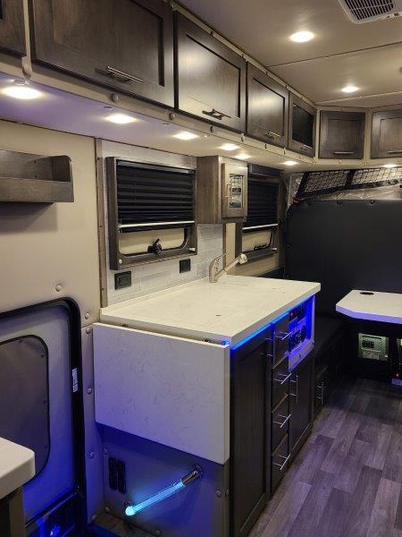 3000-Watt Inverter/Charger with Remote Display; Automatic Transfer Switch; 30 Amp Shoreline – Marine Grade & Heavy Cord; LED Light Fixtures, LED Auto Light in Sink Cabinet; (2) USB Receptacles