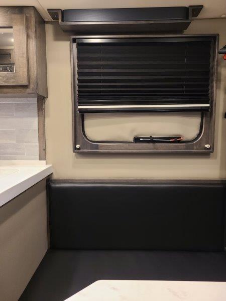 24” x 16” Frameless Window with Hardwood Trim & Day/Night Shade to PS; Frameless Egress Window with Hardwood Trim & Day to PS