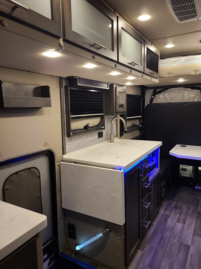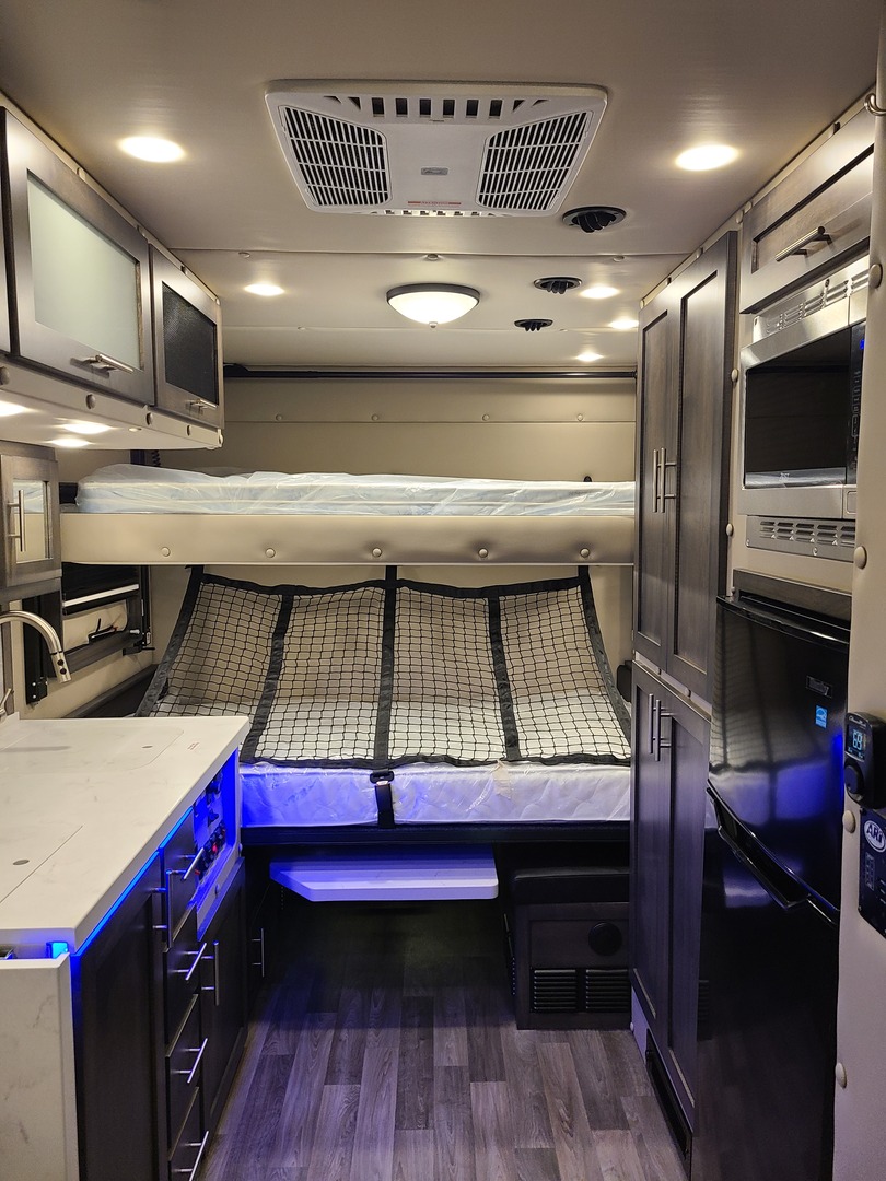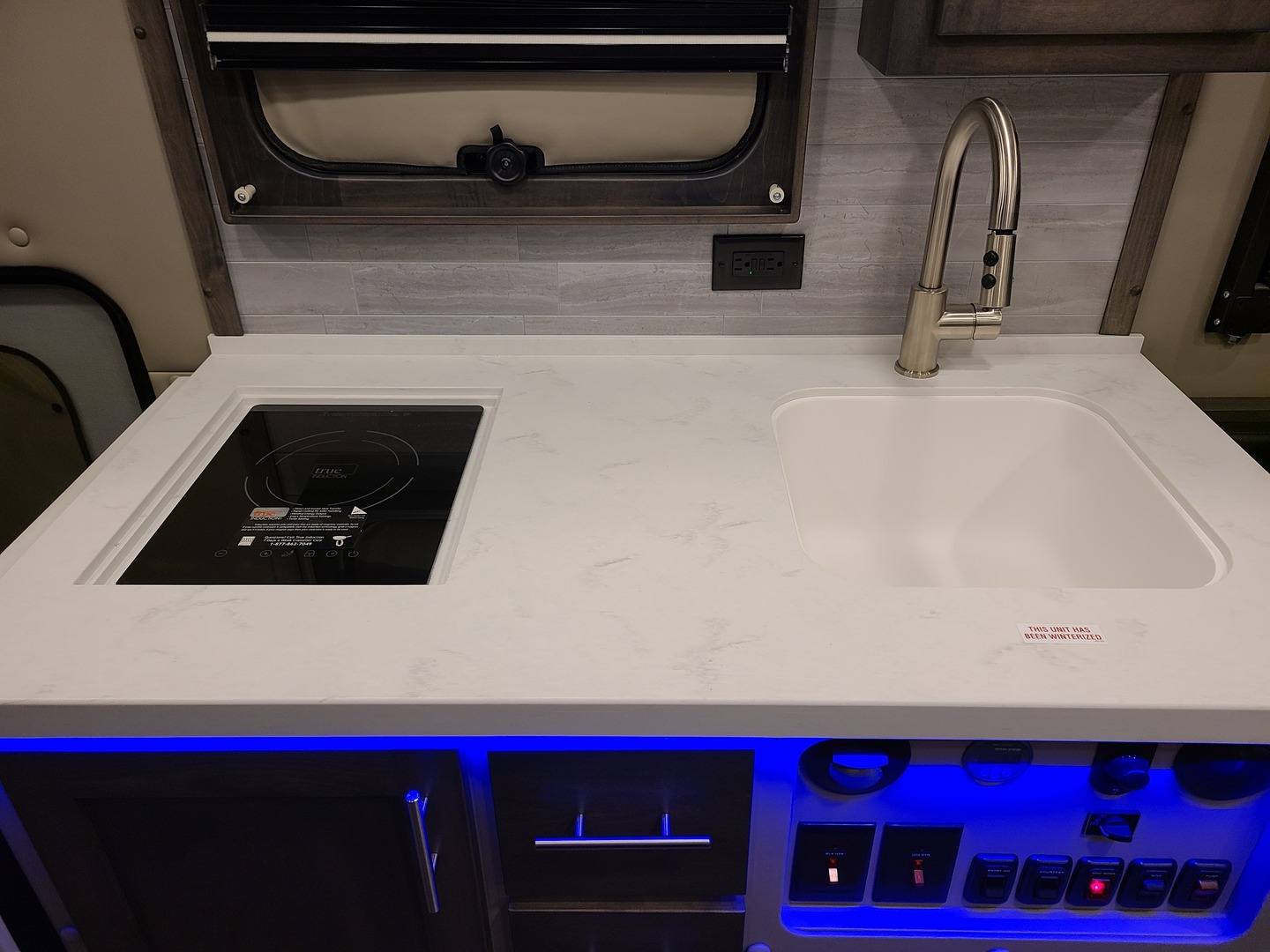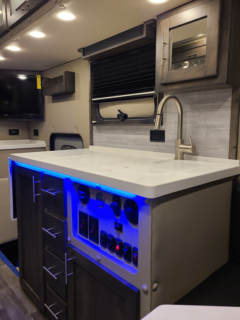 3000-Watt Inverter/Charger with Remote Display; Auto Generator Start with Purchase of a Generator; Automatic Transfer Switch; 30 Amp Shoreline – Marine Grade & Heavy Cord; LED Light Fixtures, LED Auto Light in Sink Cabinet; (2) USB Receptacles